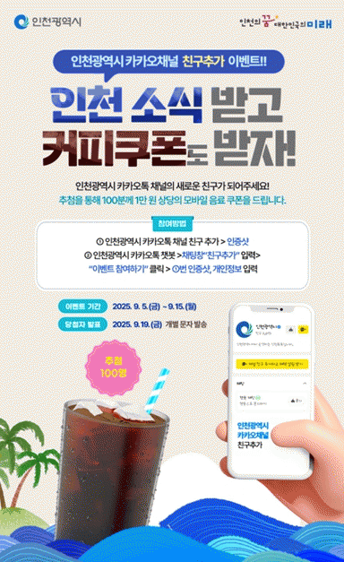 À̺¥Æ® Âü¿©ÀÚ Áß 100¸íÀ» ÃßÃ·ÇØ 1¸¸ ¿ø »ó´çÀÇ À½·á ÄíÆùÀ» °³º° ¹®ÀÚ·Î ¹ß¼ÛÇÒ ¿¹Á¤ÀÌ´Ù.