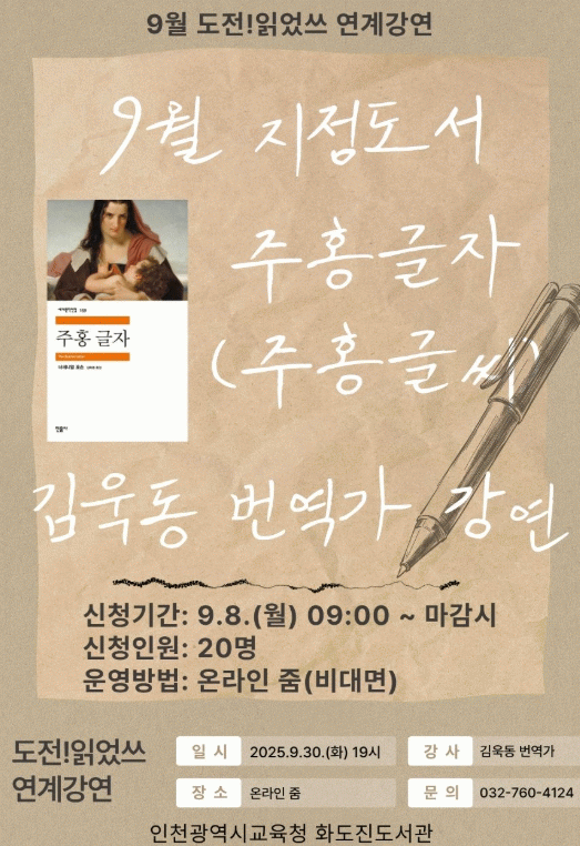 ¡®µµÀü! Àоú¾²¡¯´Â °°Àº Ã¥À» ÇÔ²² Àаí ÀǰßÀ» ³ª´©´Â µ¿¾Æ¸® Ȱµ¿ ÇÁ·Î±×·¥À¸·Î, À̹ø °¿¬¿¡¼´Â 9¿ù ÁöÁ¤ µµ¼ 'ÁÖÈ«±ÛÀÚ(ÁÖÈ«±Û¾¾)'¿¡ ´ëÇÑ ÀÌÇØ¸¦ µ½±â À§ÇØ ¹ø¿ª°¡ ±è¿íµ¿À» ÃÊÃ»ÇØ °¿¬À» ÁøÇàÇÑ´Ù.