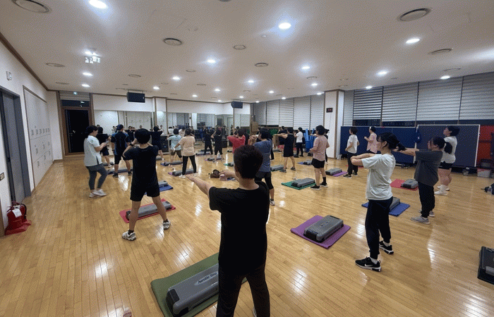 Âü¿©ÀÚµéÀº °æÄèÇÑ À½¾Ç°ú ÇÔ²² ½ºÅܹڽº¸¦ Ȱ¿ëÇÑ °í°µµ À¯»ê¼Ò ¿îµ¿°ú Áü½ºÆ½ µîÀ» Ȱ¿ëÇÑ ±Ù·Â¡¤À¯¿¬¼º ¿îµ¿À» º´ÇàÇÑ´Ù.