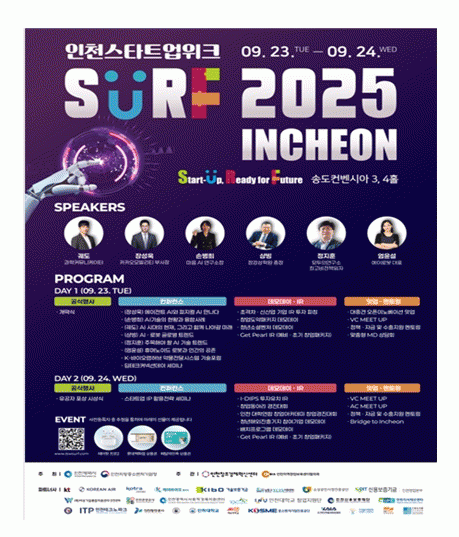 ¿ÃÇØ·Î 3ȸ°¸¦ ¸Â´Â 'SURF 2025 INCHEON'Àº ÀÎõ±¤¿ª½Ã¿Í ÀÎõÁö¹æÁß¼Òº¥Ã³±â¾÷ûÀÌ °øµ¿ ÁÖÃÖÇϰí, ÀÎõâÁ¶°æÁ¦Çõ½Å¼¾ÅÍ¿Í ÀÎõÁö¿ªÃ¢¾÷º¸À°¼¾ÅÍÇùÀÇȸ°¡ ÁÖ°üÇÑ´Ù.