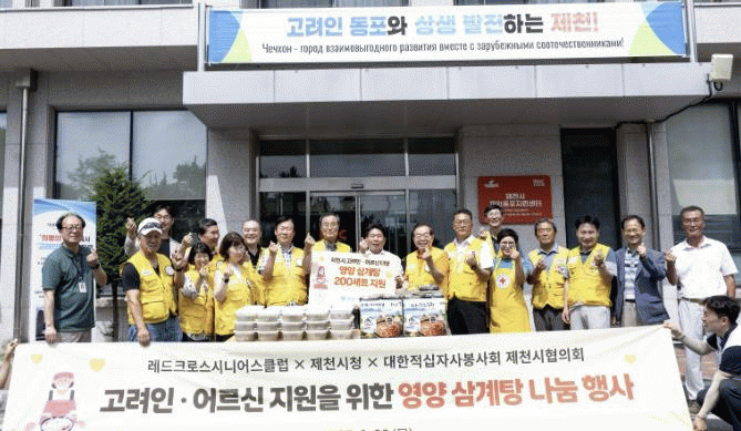 Áö³ 8¿ù 28ÀÏ, Á¦Ãµ½Ã´Â ´ëÇÑÀû½ÊÀÚ»ç RCS(Red Cross Seniors, ´ÜÀå ÀÓÀçÈ«)¿Í ÇÔ²² °í·ÁÀÎ µ¿Æ÷ ¹× Áö¿ª ¾î¸£½ÅµéÀ» ´ë»óÀ¸·Î »ï°èÅÁ ³ª´® ºÀ»çȰµ¿À» ÁøÇàÇß´Ù. RCS ȸ¿øµéÀÌ Á¤¼º²¯ ÁغñÇÑ »ï°èÅÁ 200ÀκÐÀº Á¦Ãµ½Ã Àç¿Üµ¿Æ÷Áö¿ø¼¾ÅÍ, ûÀüµ¿ ³ëÀÎȸ°ü, Ȼ갥¸¶°ñ °æ·Î´ç µî¿¡ Àü´ÞµÆ´Ù. À̳¯ ±èâ±Ô Á¦Ãµ½ÃÀå°ú ÀÓÀçÈ« ´ÜÀåÀº Á÷Á¢ ÇöÀåÀ» ã¾Æ »ï°èÅÁÀ» ³ª´©¸ç µû¶æÇÑ °Ý·Á¸¦ ÀüÇß´Ù.