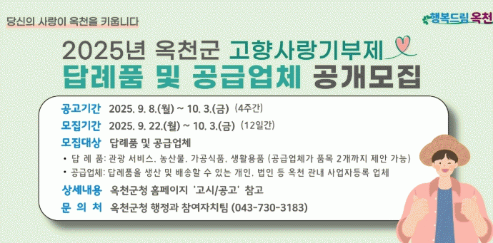 ¸ðÁý ºÐ¾ß´Â °ü±¤.¼ºñ½º, ³ó»ê¹°(Ãà»ê.¼ö»ê.ÀÓ»ê Æ÷ÇÔ), °¡°ø½Äǰ, »ýȰ¿ëǰ µî 4°³ ºÐ¾ßÀÌ¸ç ¾÷ü ½Åû ÀÚ°ÝÀº ´ä·ÊǰÀ» »ý»ê?°ø±ÞÇÒ ¼ö ÀÖ´Â °³ÀÎ, ¹ýÀÎ, °øµ¿Ã¼ Á¶Á÷ µîÀ¸·Î ¿Áõ °ü³»¿¡ »ý»ê ¶Ç´Â ¿µ¾÷ ±â¹ÝÀ» µÎ°í ÀÖ¾î¾ß ÇÑ´Ù.