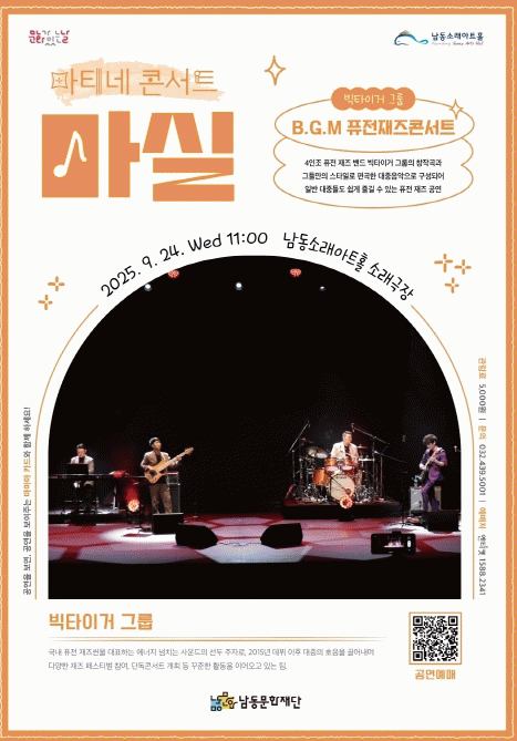 À̹ø °ø¿¬Àº ¹®È°¡ ÀÖ´Â ³¯(¸Å´Þ ¸¶Áö¸· ÁÖ ¼ö¿äÀÏ) ¿ÀÀü 11½Ã¸¶´Ù 5õ ¿ø¿¡ ¸¸³¯ ¼ö ÀÖ´Â ³²µ¿¼Ò·¡¾ÆÆ®È¦ ´ëÇ¥ »ó¼³ ÇÁ·Î±×·¥ ¡®2025 ¸¶Æ¼³×ÄܼƮ ¸¶½Ç¡¯·Î ÁøÇàµÈ´Ù.