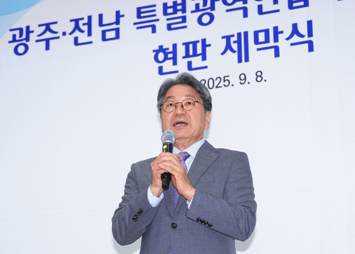 °±âÁ¤ ±¤ÁÖ±¤¿ª½ÃÀåÀº ¡°±¤ÁÖ¡¤Àü³² Ưº°±¤¿ª¿¬ÇÕÀº ´Ü¼øÇÑ ÇàÁ¤Çù·ÂÀÌ ¾Æ´Ï¶ó »ê¾÷¡¤±³Å롤¹®È Àü¹Ý¿¡¼ ¹Ì·¡»ê¾÷À» Ű¿ì°í, ±¤¿ª±³Åë¸Á È®ÀåÀ¸·Î Á¢±Ù¼ºÀ» ³ôÀÌ¸ç ¹®È¡¤°ü±¤ °æÀï·ÂÀ» Á¦°íÇÒ °Í¡±À̶ó¸ç ¡°À̸¦ ÅëÇØ µÎ Áö¿ªÀÇ ÀÚ¿ø°ú ¿ª·®À» À¯±âÀûÀ¸·Î ¿¬°áÇØ »îÀÇ ÁúÀ» ³ôÀÌ°í ¹Ì·¡¸¦ ÁغñÇÏ´Â Çù·Â¸ðµ¨·Î ¹ßÀüÇÒ °ÍÀ̸ç, Á¤ºÎÀÇ 5±Ø3Ư ±¹°¡±ÕÇü¼ºÀå Àü·«°ú ¸Â¹°·Á ±¤ÁÖ¡¤Àü³²ÀÌ ±ÕÇü¹ßÀüÀÇ »õ·Î¿î Áß½ÉÃàÀ¸·Î µµ¾àÇÏ´Â ÀüȯÁ¡ÀÌ µÉ °Í¡±À̶ó°í ¹àÇû´Ù.