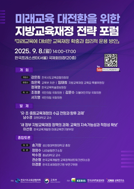 À̹ø Áö¹æ±³À°ÀçÁ¤ Àü·« Æ÷·³Àº '¹Ì·¡±³À°¿¡ ´ëºñÇÑ ±³À°ÀçÁ¤ È®Ãæ°ú ÇÕ¸®Àû ¿î¿ë ¹æ¾È'À̶ó´Â ÁÖÁ¦·Î ±³À°ºÎ¿Í Àü±¹½Ãµµ±³À°°¨ÇùÀÇȸ°¡ °øµ¿ ÁÖÃÖÇß´Ù.