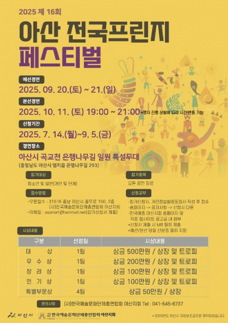 À̵¿Çö ÁöȸÀåÀº ¡°´Ù¾çÇÑ ¹®È¿¹¼ú À帣 Âü¿© È®´ë·Î dz¼ºÇÑ ¹®È¿¹¼ú Ȱµ¿ À°¼ºÀ» µµ¸ðÇϱâ À§ÇØ ±âȹÇÑ ¾Æ»ê Àü±¹ÇÁ¸°Áö Æä½ºÆ¼¹úÀÌ ¸Å³â ÇØ¸¦ °ÅµìÇÒ¼ö·Ï Àü±¹ °¢Áö¿¡¼ ½ÅûÀÌ ´Ã¾î³ª¸ç Å« È£ÀÀÀ» ¾ò°í ÀÖ´Ù¡±¸ç ¡°±âÁ¸ ÇÏ·ç ¿¹¼±ÀÌ ¾Æ´Ñ 2ÀÏ·Î ³ª´² °Å¸®°¡ ¸Õ ŸÁö ½ÅûÀÚµéÀÇ ½Ã°£À» ¹è·ÁÇÏ´Â µî Áغñ¿¡ ¸¸ÀüÀ» ±âÇϰí ÀÖ´Ù. ¿¹¼±ºÎÅÍ Ä¡¿ÇÑ ³¢¿Í ÀçÁÖ¸¦ ¿³º¼ ¼ö ÀÖ´Â ¾Æ»ê Àü±¹ÇÁ¸°Áö Æä½ºÆ¼¹ú¿¡ ¸¹Àº °ü¶÷À» ¹Ù¶õ´Ù¡±°í ÃÊ´ëÇß´Ù.