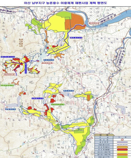 µÎ »ç¾÷ÀÌ ¸ðµÎ ¿Ï·áµÇ¸é ¾Æ»ê½Ã´Â ºÏºÎ¿Í ³²ºÎ Àü¿ªÀ» ¾Æ¿ï·¯ ÃÑ 4,451ha¿¡ ¾ÈÁ¤ÀûÀÎ ³ó¾÷¿ë¼ö¸¦ °ø±ÞÇÒ ¼ö ÀÖ°Ô µÈ´Ù. Áö¿ª °£ ¼öÀÚ¿øÀ» ¿¬°áÇϰí Ãë¼ö½Ã¼³°ú °üÁ¤À» ÇÔ²² °ü¸®ÇÏ´Â ÅëÇÕ Ã¼°è°¡ ±¸ÃàµÇ´Â °ÍÀÌ´Ù. ±×µ¿¾È °¡¹³ÀÌ ½ÉÇϸé Àú¼öÁö ¼öÀ§°¡ ³·¾ÆÁ® ¹° °ø±Þ¿¡ Â÷ÁúÀÌ »ý°åÁö¸¸, ¾ÕÀ¸·Î´Â ¾Æ»êÈ£¿Í »ð±³È£ÀÇ ¹°À» ²ø¾î¿Í º¸°ÇÒ ¼ö ÀÖ¾î »ó½Ã ´ëÀÀÀÌ °¡´ÉÇØÁø´Ù.