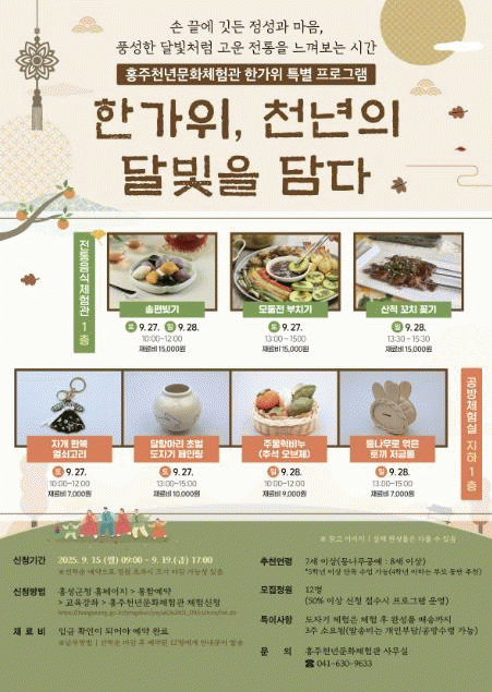 ¸íÀýÀÇ µû¶æÇÑ Á¤Ãë¿Í ÀüÅë¹®ÈÀÇ ¾Æ¸§´Ù¿òÀ» ´À³¥ ¼ö ÀÖ´Â À̹ø ÇÁ·Î±×·¥Àº ¼ÛÆí ºú±â, ¸ðµÒÀü ºÎÄ¡±â, »êÀû ²¿Ä¡ ²È±â, ÀÚ°³ ÇѺ¹ ¿¼è°í¸®, ´ÞÇ׾Ƹ® Ãʹú µµÀÚ±â ÆäÀÎÆÃ, ÁÖ¹°·° ºñ´©(Ãß¼®¿ÀºêÁ¦), µî³ª¹«·Î ¿«Àº Åä³¢ Àú±ÝÅë µî ÃÑ 7°³ÀÇ Ã¼ÇèÀ¸·Î ±¸¼ºµÇ¾î ÀÖ¾î °¡Á· ´ÜÀ§ ¹æ¹®°´°ú Áö¿ª ÁֹεéÀÌ ÇÔ²² Âü¿©ÇØ Áñ±æ ¼ö Àִ dz¼ºÇÑ ÇѰ¡À§ üÇèÀÇ ÀåÀÌ µÉ °ÍÀ¸·Î ±â´ëµÈ´Ù.