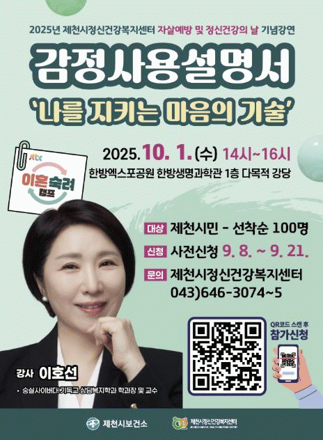 ÀÌÈ£¼± ±³¼ö´Â ´Ù¾çÇÑ ¹æ¼Û°ú °¿¬À» ÅëÇØ Ȱ¹ßÈ÷ Ȱµ¿Çϰí ÀÖ´Â »ó´ã½É¸® Àü¹®°¡·Î, ½Ã¹ÎµéÀÌ Àϻ󿡼 °Þ´Â °¨Á¤ ¹®Á¦¸¦ ÀÌÇØÇÏ°í °Ç°ÇÏ°Ô ´Ù·ç´Â ¹æ¹ýÀ» ¼Ò°³ÇÒ °èȹÀÌ´Ù.