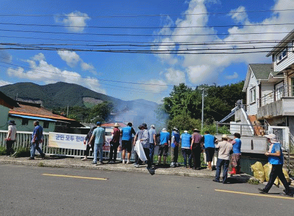 ¹¬Àº ¾²·¹±â·Î ¸ö»ìÀ» ¾Î´ø °Å¸®°¡ ¸»²ûÇØÁöÀÚ, ¸¶À» ÁֹεéÀº Å©°Ô ±â»µÇÏ¸ç °¨»ç Àλ縦 ÀüÇß´Ù.