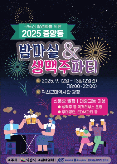 ÀÍ»ê½Ã´Â ¿À´Â 12ÀϺÎÅÍ 13ÀϱîÁö ÀÌÆ²°£ Áß¾Óµ¿ ±Ù´ë¿ª»ç°ü ±¤Àå¿¡¼ 'Áß¾Óµ¿ ¹ã¸¶½Ç&»ý¸ÆÁÖ ÆÄƼ'¸¦ °³ÃÖÇÑ´Ù°í 9ÀÏ ¹àÇû´Ù.
