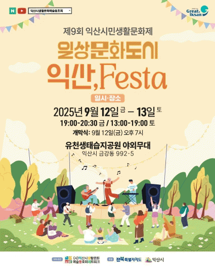 9ÀÏ ÀÍ»ê½Ã¿¡ µû¸£¸é 'Á¦9ȸ ÀÍ»ê½Ã¹Î»ýȰ¹®ÈÁ¦-ÀÏ»ó¹®Èµµ½Ã ÀÍ»ê, Æä½ºÅ¸(Festa)'°¡ ¿À´Â 12ÀÏ ¿ÀÈÄ 7½Ã À¯Ãµ»ýŽÀÁö ¾ß¿Ü¹«´ë¿¡¼ °³¸·½ÄÀ» ½ÃÀÛÀ¸·Î 13ÀϱîÁö ÀÌÆ²°£ °³ÃֵȴÙ.