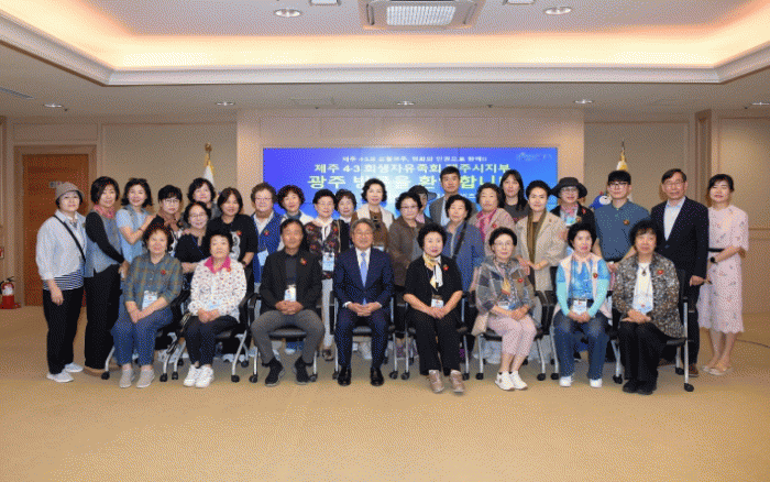 ±è´ë¿í Á¦ÁÖ4¡¤3Èñ»ýÀÚÀ¯Á·È¸ Á¦ÁÖ½ÃÁöºÎÀåÀº ¡°±¤ÁÖ½ÃÀÇ È¯´ë¿¡ ±íÀÌ °¨»çµå¸°´Ù¡±¸ç ¡°±¤ÁÖ¿Í Á¦ÁÖ°¡ ÇÔ²² Àαǰú ¹ÎÁÖÁÖÀǸ¦ ÁöÄѿ ¿ª»ç¸¦ ±â¾ïÇÏ¸ç ¾ÕÀ¸·Îµµ ¿¬´ë¸¦ À̾°Ú´Ù¡±°í È´äÇß´Ù.