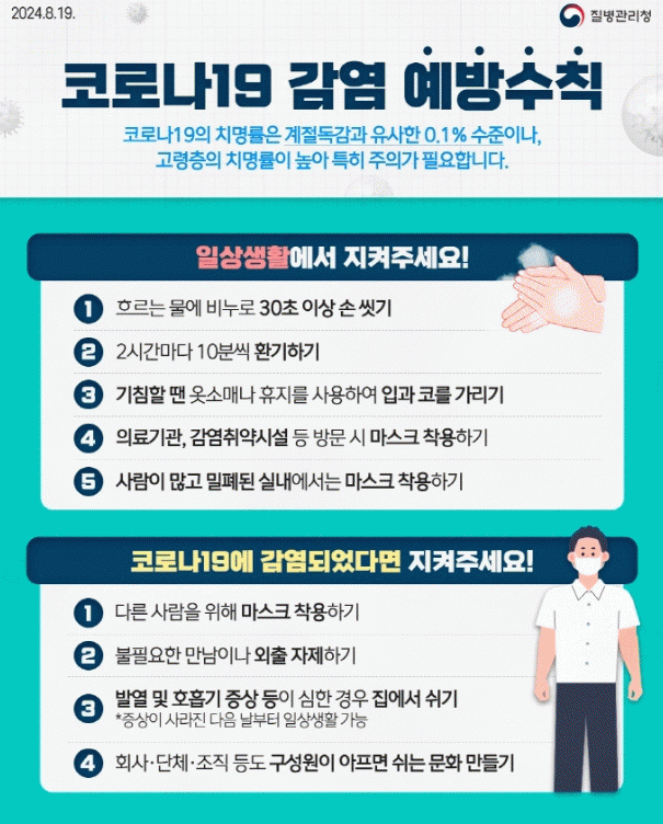 Äڷγª19¸¦ ¿¹¹æÇϱâ À§Çؼ´Â ¡ã¿Ã¹Ù¸¥ ¼Õ ¾Ä±â ¡ã¸¶½ºÅ© Âø¿ë ¡ã±âħ ¿¹Àý ½Çõ ¡ãÁÖ±âÀûÀÎ ½Ç³» ȯ±â ¡ã¹ß¿ ¹× È£Èí±â Áõ»ó ½Ã ½Å¼ÓÇÑ º´¿ø Áø·á µîÀÇ ¿¹¹æ ¼öÄ¢À» ÁؼöÇØ¾ß ÇÑ´Ù.