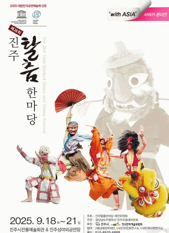 ¿ÃÇØ Çà»ç´Â 2025³â ´ëÇѹα¹ °ø¿¬¿¹¼úÁ¦ »ç¾÷¿¡ ¼±Á¤µÇ´Â Äè°Å ¼Ó¿¡ '¡®WITH ASIA¡¯ »çÀÚ°¡ ¿Â´Ù!!!'¸¦ ½½·Î°ÇÀ¸·Î ÁøÁÖÅ»ÃãÇѸ¶´ç Á¦ÀüÀ§¿øÈ¸(´ëÇ¥ °µ¿¿Á)°¡ ÁÖÃÖÇÏ°í °æ»ó³²µµ¹«ÇüÀ¯»ê ÁøÁÖ¿À±¤´ëº¸Á¸È¸°¡ ÁÖ°üÇϸç ÁøÁÖ½Ã, Çѱ¹¹®È¿¹¼úÀ§¿øÈ¸ÀÇ ÈÄ¿ø ¹× (Àç)³²¾ÖÀåÇÐÀç´Ü, (»ç)ÁøÁÖ¹®È¿¬±¸¼Ò, (»ç)¹ÎÁ·¹ÌÇבּ¸¼ÒÀÇ Çù·ÂÀ¸·Î °³ÃֵȴÙ.