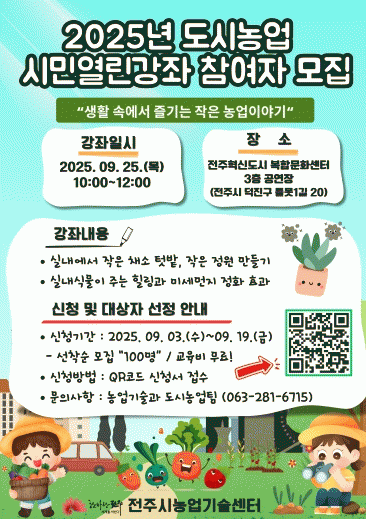 ÀüÁֽóó¾÷±â¼ú¼¾ÅÍ °ü°èÀÚ´Â ¡°µµ½Ã Àα¸°¡ Áõ°¡ÇÏ¸é¼ È¯°æ¹®Á¦, ½Ä»ýȰ ºÒ±ÕÇü, Á¤½ÅÀû ½ºÆ®·¹½º µî ´Ù¾çÇÑ »çȸ¹®Á¦°¡ ´ëµÎµÇ°í ÀÖÀ¸¸ç, ÀÌ¿¡ ´ëÇÑ ´ë¾ÈÀ¸·Î ¶°¿À¸£´Â µµ½Ã³ó¾÷Àº ´Ü¼øÇÑ Ãë¹ÌȰµ¿À» ³Ñ¾î µµ½Ã¹ÎµéÀÇ °Ç°°ú ȯ°æÀ» ÁöŰ´Â Áß¿äÇÑ ½ÇõÀ¸·Î ÁÖ¸ñ¹Þ°í ÀÖ´Ù¡±¸é¼ ¡°À̹ø ¿¸°°Á¸¦ ÅëÇØ ´õ ¸¹Àº ½Ã¹ÎÀÌ µµ½Ã³ó¾÷¿¡ °ü½ÉÀ» °®°í ÇÔ²² ½ÇÃµÇØ ³ª°¡´Â °è±â°¡ µÇ±æ ¹Ù¶õ´Ù¡±°í ¸»Çß´Ù.
