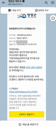 īī¿À ¾Ë¸²Åå' ¸ð¹ÙÀÏ ÀüÀÚ°íÁö ¼ºñ½º´Â ³³¼¼ÀÚ°¡ º»ÀÎ ¸íÀÇÀÇ ½º¸¶Æ®ÆùÀ» ÅëÇØ Áö¹æ¼¼ ü³³ ³»¿ª°ú ±Ý¾×À» È®ÀÎÇÑ µÚ ±ÝÀ¶±â°üÀ» ¹æ¹®ÇÏÁö ¾Ê°íµµ ³³ºÎÇÒ ¼ö ÀÖ´Â Æí¸®ÇÔÀ» Á¦°øÇÑ´Ù.