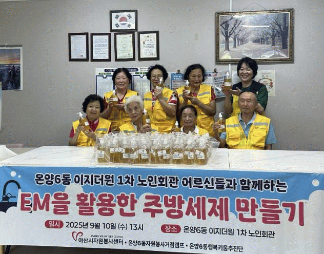 À̹ø ±âºÎ´Â ¾Æ»ê½ÃÀÚ¿øºÀ»ç¼¾ÅÍÀÇ ¿¹»ê Áö¿øÀ» ¹Þ¾Æ ¿Â¾ç6µ¿ °ÅÁ¡Ä·ÇÁ¿Í Çù¾÷À¸·Î ÃßÁøµÆ´Ù. ¾î¸£½ÅµéÀº EM(Effective Microorganisms) ģȯ°æ õ¿¬Áֹ漼Á¦¸¦ Á÷Á¢ ¸¸µé¾î ¿Â¾ç6µ¿ ÇູŰ¿òÃßÁø´ÜÀ» ÅëÇØ °ü³» Ãë¾à°èÃþ °¡Á¤¿¡ Àü´ÞÇß´Ù.