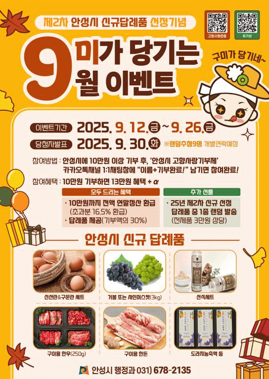 ¾È¼º½Ã´Â À̹ø À̺¥Æ®¸¦ ÅëÇØ ½Å±Ô ´ä·ÊǰÀÇ ¿ì¼ö¼ºÀ» ³Î¸® ¾Ë¸®°í, °íÇâ»ç¶û±âºÎÁ¦¿¡ Âü¿©ÇÒ ¼ö ÀÖ´Â Èï¹Ì·Î¿î °è±â¸¦ ¸¶·ÃÇÒ °èȹÀÌ´Ù.