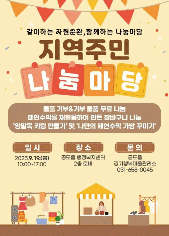À̹ø Çà»ç´Â ÁֹεéÀÇ ÀÚ¹ßÀûÀÎ ±âºÎ·Î ¸ðÀÎ ¹°Ç°À» ÇÊ¿äÇÑ Áֹε鿡°Ô ¹«·á·Î ³ª´©¾î ÀÌ¿ô °£ µûµíÇÑ Á¤À» ³ª´©´Â µ¿½Ã¿¡ ȯ°æÀ» ÁöŰ´Â ÀÚ¿ø¼øÈ¯¡¤Åº¼ÒÁ߸³ ½ÇõÀÇ ÀåÀ¸·Î ¸¶·ÃµÆ´Ù.