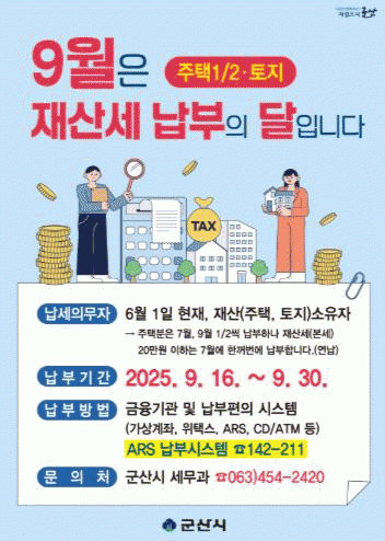 Àç»ê¼¼´Â ¸Å³â 6¿ù 1ÀÏ ÇöÀç ºÎµ¿»ê ¼ÒÀ¯ÀÚ¿¡°Ô ºÎ°úµÇ´Â ¼¼±ÝÀ¸·Î, À̹ø 9¿ù Á¤±âºÐÀº ÅäÁö ¹× ÁÖÅÃ(1/2)¿¡ ´ëÇØ °ú¼¼µÈ´Ù.