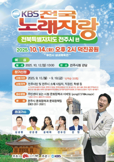 ÀüÁֽô ¿À´Â 10¿ù 14ÀÏ ¿ÀÈÄ 2½Ã, ´öÁø°ø¿ø¿¡¼ ¿Â ±¹¹ÎÀÇ »ç¶ûÀ» ¹Þ¾Æ¿Â KBS ¡®Àü±¹³ë·¡ÀÚ¶û¡¯ ÀüºÏƯº°ÀÚÄ¡µµ ÀüÁÖ½ÃÆíÀÌ °³Ãֵȴٰí 12ÀÏ ¹àÇû´Ù.