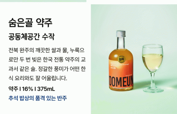 ¡®¼öÀÛ¡¯Àº Áö¿ª ³ó»ê¹°°ú ÀüÅë ¾çÁ¶ ±â¹ýÀ» ±â¹ÝÀ¸·Î µ¶Ã¢ÀûÀÎ ÀüÅëÁÖ¸¦ °³¹ßÇØ¿ÔÀ¸¸ç, À̹ø¿¡ ¡®¼ûÀº°ñ ¾àÁÖ¡¯°¡ ÀüºÏÀ» ´ëÇ¥ÇÏ´Â 7Á¾ÀÇ ÀüÅë °Ç¹èÁÖ Áß Çϳª·Î ¼±Á¤µÆ´Ù.