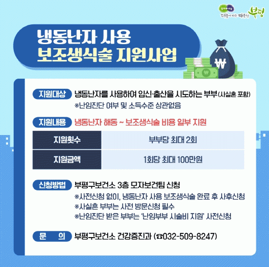 Áö¿ø ´ë»óÀº ³ÀÓ Áø´Ü ¿©ºÎ¿Í °ü°è¾øÀÌ ³Ãµ¿ ³ÀÚ¸¦ ÇØµ¿ÇØ º¸Á¶»ý½Ä¼úÀ» ¹Þ´Â ºÎºÎÀ̸ç, ½Ã¼ú 1ȸ´ç ÃÖ´ë 100¸¸¿ø(ÃÑ 2ȸ±îÁö)À» Áö¿ø ¹ÞÀ» ¼ö ÀÖ´Ù.