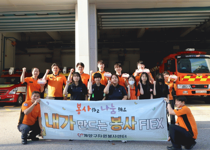 À̹ø ³ª´®Àº °è¾ç±¸ ÀÚ¿øºÀ»ç¼¾ÅͰ¡ ¿î¿µÇϴ û¼Ò³â ºÀ»ç ÇÁ·Î±×·¥ ¡°³»°¡ ¸¸µå´Â ºÀ»ç FLEX¡±ÀÇ ÀÏȯÀ¸·Î ¸¶·ÃµÈ °ÍÀ¸·Î, ÇлýµéÀÌ Áö¿ª»çȸÀÇ ¾ÈÀüÀ» À§ÇØ Çå½ÅÇÏ´Â ¼Ò¹æ°üµé¿¡°Ô °¨»çÀÇ ¸¶À½À» ÀüÇϰíÀÚ Á÷Á¢ ¸¸µç ¹ÙÅ©ÃÊÄݸ´°ú ¼ÕÆíÁö¸¦ ÁغñÇØ ¼Ò¹æ¼¿¡ Àü´ÞÇß´Ù.