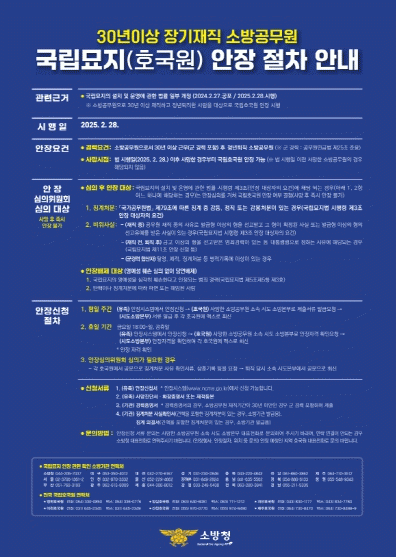 Áö³ 2¿ù 28ÀÏ, ¡®±¹¸³¹¦ÁöÀÇ ¼³Ä¡ ¹× ¿î¿µ¿¡ °üÇÑ ¹ý·ü¡¯ÀÌ °³Á¤µÅ 30³â ÀÌ»ó Àå±â ÀçÁ÷ÇÑ ÈÄ Á¤³âÅðÁ÷ÇÑ ¼Ò¹æ°ø¹«¿øÀÇ ±¹¸³¹¦Áö(È£±¹¿ø) ¾ÈÀåÀÌ °¡´ÉÇØÁ³´Ù.
