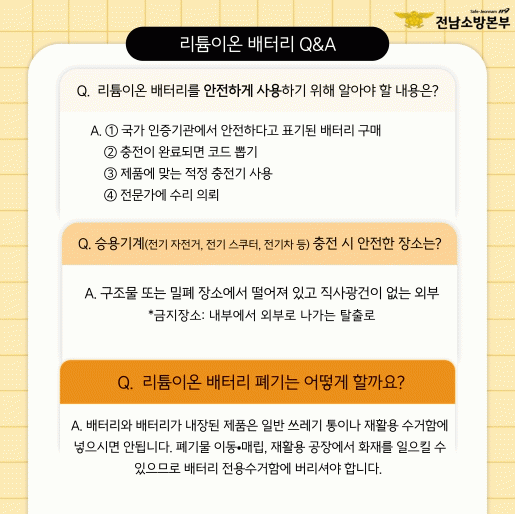 Á¤¿ëÀÎ °Áø¼Ò¹æ¼ÀåÀº ¡°¸®Æ¬À̿ ¹èÅ͸®´Â Æí¸®ÇÔ°ú ÇÔ²² ÈÀç À§Çèµµ ³»Æ÷Çϰí ÀÖ´Ù¡±¸ç ¡°ÀÛÀº ½À°üÀÇ º¯È¿Í ÁÖÀÇ ±íÀº °ü¸®°¡ ´ëÇü ÈÀ縦 ¸·´Â °¡Àå È¿°úÀûÀÎ ¹æ¹ý¡±À̶ó°í ¸»Çß´Ù. ¶ÇÇÑ ¡°°Áø¼Ò¹æ¼´Â °øµ¿ÁÖÅÃ, Çб³, ´ÙÁßÀÌ¿ë½Ã¼³ µîÀ» Áß½ÉÀ¸·Î ã¾Æ°¡´Â ¾ÈÀü±³À°°ú Ä·ÆäÀÎÀ» ²ÙÁØÈ÷ È®´ëÇÏ¿© ±º¹Î ¸ðµÎ°¡ ½º½º·Î ¾ÈÀüÀ» ÁöŰ´Â ¹®È°¡ Á¤ÂøµÇµµ·Ï Èû¾µ °Í¡±À̶ó°í µ¡ºÙ¿´´Ù.