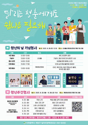 ±¸´Â 9¿ù 20ÀÏ ¡®Ã»³âÀÇ ³¯ ±â³äÇà»ç¡¯À» ¿°í û³âÁÖ°£Çà»çÀÇ ½ÃÀÛÀ» ¾Ë¸± ¿¹Á¤ÀÌ´Ù. À̳¯ Çà»ç¿¡¼´Â û³â °ø¿¬ÆÀÀÇ ¹«´ë¸¦ ºñ·ÔÇØ °æÁ¦ Ä®·³´Ï½ºÆ® ±è°æÇÊ ÀÛ°¡¸¦ ÃÊÃ»ÇØ ¡®ÅÖÀå Å»Ãâ! ¶È¶ÈÇÑ ÀÚ»ê°ü¸®·Î »ì¾Æ³²±â¡¯¸¦ ÁÖÁ¦·Î ¸í»ç Ư°À» ¿î¿µÇÑ´Ù. ¶ÇÇÑ Ä³¸®Ä¿Ã³, Ÿ·Î »ó´ã, ¸éÁ¢»çÁø ÃÔ¿µ µî ´Ù¾çÇÑ ºÎ´ëÇà»çµµ ÁغñµÆ´Ù.