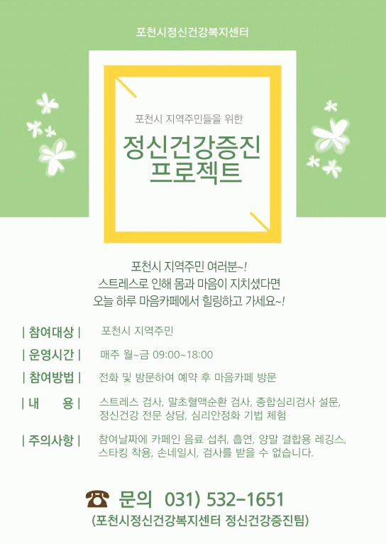 ¡®¸¶À½Ä«Æä¡¯´Â Æ÷õ½Ã¹Î ´©±¸³ª ÀÚÀ¯·Ó°Ô ÀÌ¿ëÇÒ ¼ö ÀÖ´Â ¿¸° °ø°£À¸·Î, ½Ã¹ÎµéÀÇ ½ºÆ®·¹½º À§Çè ÀνÄÀ» ³ôÀ̰í Àü¹®ÀûÀÎ Á¤½Å°Ç° ¼ºñ½º¸¦ º¸´Ù ½±°Ô Á¢ÇÒ ¼ö ÀÖµµ·Ï Æ÷õ½Ãº¸°Ç¼Ò°¡ ¸¶·ÃÇß´Ù.