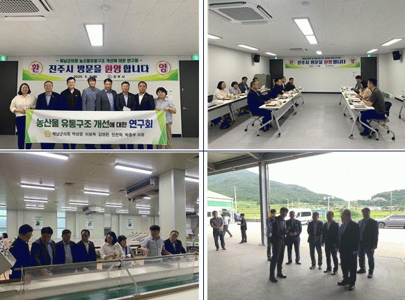 ¿¬±¸È¸´Â ÁøÁÖ½Ã¿Í ³²Çرº À¯Åë ´ã´ç ºÎ¼ ¹× ³óÇù °ü°èÀÚµé°úÀÇ °£´ãȸ¸¦ °®°í ¡âÁ¦µµÀû¡¤ÇàÁ¤Àû Áö¿ø ¹æ¾È ¡â³ó»ê¹° À¯Åë Ȱ¼ºÈ Àü·« ¡â³ó»ê¹° °¡°Ý ¾ÈÁ¤È ¹æ¾È µî¿¡ ´ëÇØ ´Ù¾çÇÑ ÀǰßÀ» ³ª´³À¸¸ç, ³ó»ê¹°»êÁöÀ¯Åë¼¾ÅÍ ÀÛ¾÷ÀåÀ» Á÷Á¢ ¹æ¹®ÇØ ¼±º°¡¤Æ÷À塤ÀúÀå ½Ã¼³À» µÑ·¯º¸°í ¿î¿µ °úÁ¤À» °ßÇÐÇß´Ù.