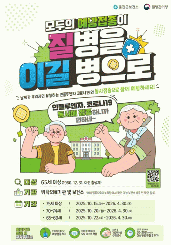 65¼¼ ÀÌ»ó ´ë»óÀÚ´Â 10¿ù 15ÀϺÎÅÍ µ¿ÀÏÇÑ ÀÏÁ¤À¸·Î Äڷγª19 ¿¹¹æÁ¢Á¾ ½ÃÇà ¿¹Á¤À̸ç, ¿ËÁø±ºÀº µÎ ¹é½ÅÀ» µ¿½Ã¿¡ Á¢Á¾ÇÏ´Â °ÍÀ» ±Ç°íÇϸç, µ¿½Ã¿¡ Á¢Á¾ÇÏ´Â °æ¿ì °¢°¢ ´Ù¸¥ ºÎÀ§¿¡ ¹é½ÅÀ» ¸Â¾Æ¾ß ÇÑ´Ù.