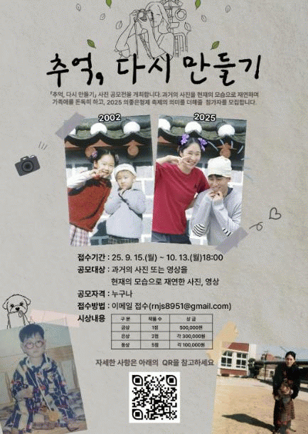 À̹ø °ø¸ðÀüÀº °ú°ÅÀÇ ¼ÒÁßÇÑ Ãß¾ïÀ» ÇöÀçÀÇ ¸ð½ÀÀ¸·Î ÀçÇöÇØ °¡Á·°ú ÇÔ²² Ãß¾ïÀ» µÇ»õ±â°í ±× ¼ÒÁßÇÔÀ» ´Ù½Ã ´À³¢´Â ±âȸ¸¦ Á¦°øÇϱâ À§ÇØ ¸¶·ÃµÆ´Ù.
