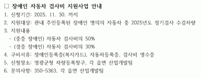 ´ë»óÀÚ´Â Àå¾ÖÀεî·ÏÁõ, ÀÚµ¿Â÷µî·ÏÁõ, °Ë»çºñ ¿µ¼öÁõÀ» ±¸ºñÇØ ¡â¿µ±¤±ºÃ» Â÷·®µî·Ïⱸ ¡â°¢ À¾¸é»ç¹«¼Ò »ê¾÷°³¹ßÆÀÀ» ¹æ¹®ÇÏ¿© ½ÅûÇÏ¸é µÇ°í, ¹®ÀÇ »çÇ×Àº ¿µ±¤±ºÃ» °Ç¼³±³Åë°ú ¶Ç´Â °¢ À¾¡¤¸é»ç¹«¼Ò »ê¾÷°³¹ßÆÀÀ¸·Î ¿¬¶ôÇÏ¸é µÈ´Ù.
