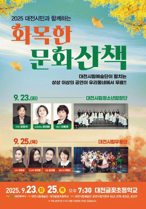 ´ëÀü½Ã¸³¿¹¼ú´ÜÀº ¿À´Â 9¿ù 23Àϰú 25ÀÏ Àú³á 7½Ã 30ºÐ, ´ëÀü±Û²ÉÃʵîÇб³ °´ç¿¡¼ ¡®È¸ñÇÑ ¹®È»êÃ¥¡¯ °ø¿¬À» ¿¬´Ù.