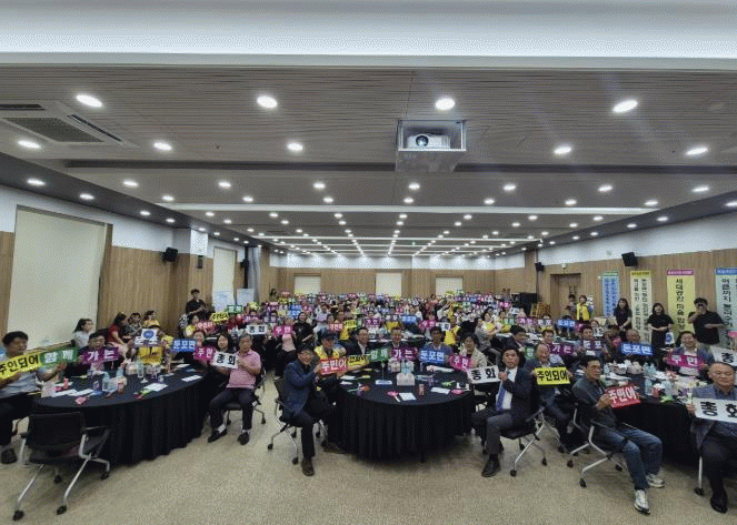 ÀÌ´ëÈñ ÁÖ¹ÎÀÚġȸÀåÀº ¡°ÁÖ¹ÎÃÑȸ´Â ÇàÁ¤ÀÌ ¾Æ´Ñ ÁֹΠ½º½º·Î°¡ ¸¶À»ÀÇ ¹Ì·¡¸¦ °áÁ¤ÇÏ´Â ¶æ±íÀº Âü¿©ÀÇ À塱À̶ó¸ç ¡°¿À´Ã ³íÀÇµÈ ¾È°ÇµéÀÌ µÐÆ÷¸é ¹ßÀü°ú °øµ¿Ã¼ ÈÇÕÀÇ ¹Ø°Å¸§ÀÌ µÇ±â¸¦ ¹Ù¶õ´Ù¡±°í ¸»Çß´Ù.