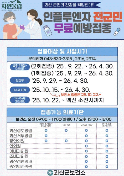 ¶ÇÇÑ ±¹°¡¿¹¹æÁ¢Á¾»ç¾÷ ´ë»ó¿¡ Æ÷ÇÔµÇÁö ¾Ê´Â 14~64¼¼ ±«»ê±º¹Îµµ 10¿ù 22ÀϺÎÅÍ ¹«·á Á¢Á¾ÀÌ °¡´ÉÇÏ´Ù.