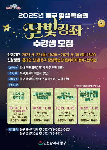 ¼ö° ½ÅûÀº ¿À´Â 22ÀÏ~30ÀϱîÁö Æò»ýÇнÀ°ü ´©¸®ÁýÀ» ÅëÇØ ¿Â¶óÀÎÀ¸·Î °¡´ÉÇϸç, ¼±Âø¼øÀ¸·Î ¸¶°¨µÈ´Ù. ¼ö°·á´Â ¹«·áÀ̳ª, °úÁ¤º° Àç·áºñ´Â º»ÀÎÀÌ ºÎ´ãÇØ¾ß ÇÑ´Ù.