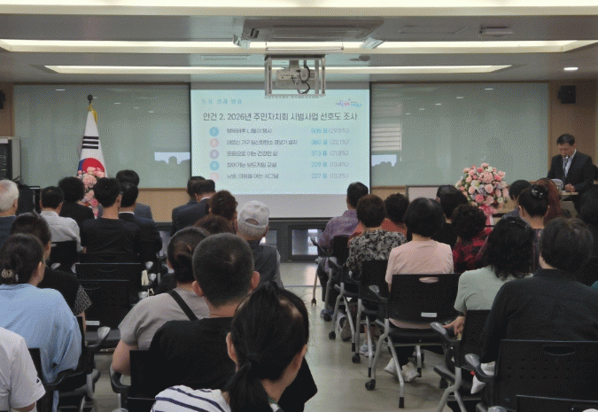 À̳¯ Áֹΰú ³»ºóÀÌ Âü¿©ÇÑ °¡¿îµ¥, ÁÖ¹ÎÀÚġȸ´Â ¿ÃÇØ ÁÖ¹ÎÀÚġȸ Ȱµ¿À» º¸°íÇϰí, 2026³â ÀÚÄ¡°èȹ(¾È)°ú ½Ã¹ü »ç¾÷ ¿ì¼±¼øÀ§ ÅõÇ¥ °á°ú¸¦ ¹ßÇ¥Çß´Ù.