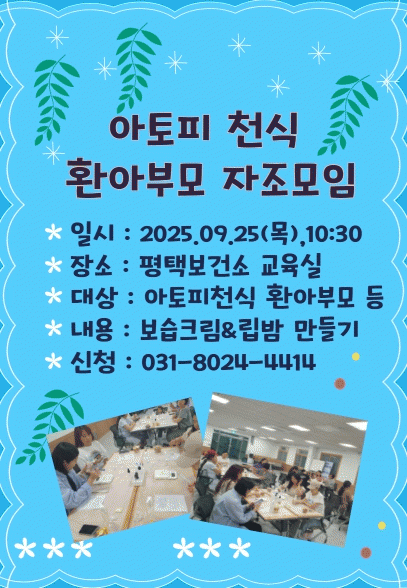 ¾ÆÅäÇÇ¡¤Ãµ½Ä ÀÚÁ¶¸ðÀÓÀº ¿ÃÇØ 12¿ù±îÁö ÃÑ 4ȸ ÁøÇàµÇ¸ç, ºÎ¸ðµéÀÌ ¸ð¿© °Ç°Á¤º¸¸¦ °øÀ¯ÇÏ°í »ýȰ ¼Ó °ü¸®¹ýÀ» ¹è¿ì´Â ÀåÀ¸·Î ¿î¿µµÈ´Ù. À̹ø ¸ðÀÓÀº ¡ã¾ÆÅäÇÇ ÇǺο° °ü¸®¿¡ ´ëÇÑ ÀÌÇØ ±³À° ¡ãõ¿¬ ¾Æ·Î¸¶ º¸½ÀÁ¦(¼öºÐÅ©¸²¡¤¸³¹ã) ¸¸µé±â üÇè ÇÁ·Î±×·¥À¸·Î ±¸¼ºµÇ¾î, ȯ¾Æ ºÎ¸ðµéÀÌ ½Ç»ýȰ¿¡ Àû¿ëÇÒ ¼ö ÀÖ´Â ½ÇÁúÀûÀÎ µµ¿òÀ» Á¦°øÇÒ ¿¹Á¤ÀÌ´Ù.
