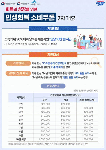 2025³â 6¿ù ºÎ°úµÈ °Ç°º¸Çè·á º»Àκδã±Ý ÇÕ»ê¾×ÀÌ °¡±¸¿ø¼öº°¡¤À¯Çüº° ±âÁØ¾× ÀÌÇÏ¿©¾ß 2Â÷ ¼ÒºñÄíÆù Áö±Þ ´ë»ó¿¡ Æ÷ÇԵȴÙ.