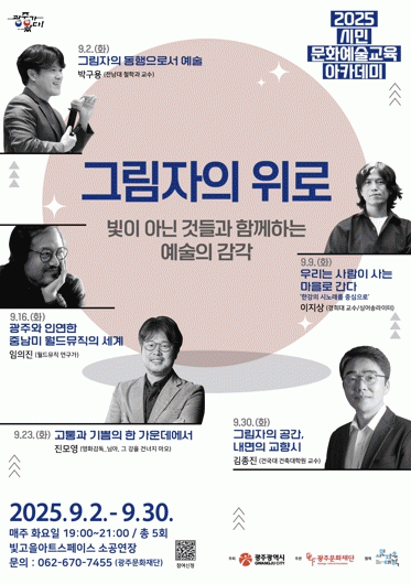 ¿ÃÇØ ¾ÆÄ«µ¥¹Ì´Â ¡®±×¸²ÀÚÀÇ À§·Î-ºûÀÌ ¾Æ´Ñ °Íµé°ú ÇÔ²²ÇÏ´Â ¿¹¼úÀÇ °¨°¢¡¯À» ÁÖÁ¦·Î, ¸ÅÁÖ È¿äÀÏ ÃÑ 5ȸ¿¡ °ÉÃÄ ÁøÇàµÈ´Ù. ±¤ÁÖ¹®ÈÀç´Ü°ú (»ç)Àι®µµ½Ã¿¬±¸¿ø ½Ã¹ÎÀÚÀ¯´ëÇÐÀÌ Çù·ÂÇØ ÃßÁøÇϸç, °¿¬°ú °ø¿¬ÀÌ °áÇÕµÈ °¿¬Çü ÄܼƮ·Î ½Ã¹ÎµéÀÇ Å« °ü½ÉÀ» ¸ðÀ¸°í ÀÖ´Ù.