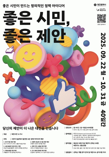 Âü¿© ¹æ¹ýÀº ´ëÀü½Ã¼Ò ȨÆäÀÌÁö¿¡¼ ½Ã¹ÎÁ¦¾ÈÀ» µî·ÏÇϰí, Á¦¾È ±â°£ µ¿¾È 10¸í ÀÌ»óÀÇ °ø°¨À» ¾òÀ¸¸é µÈ´Ù.