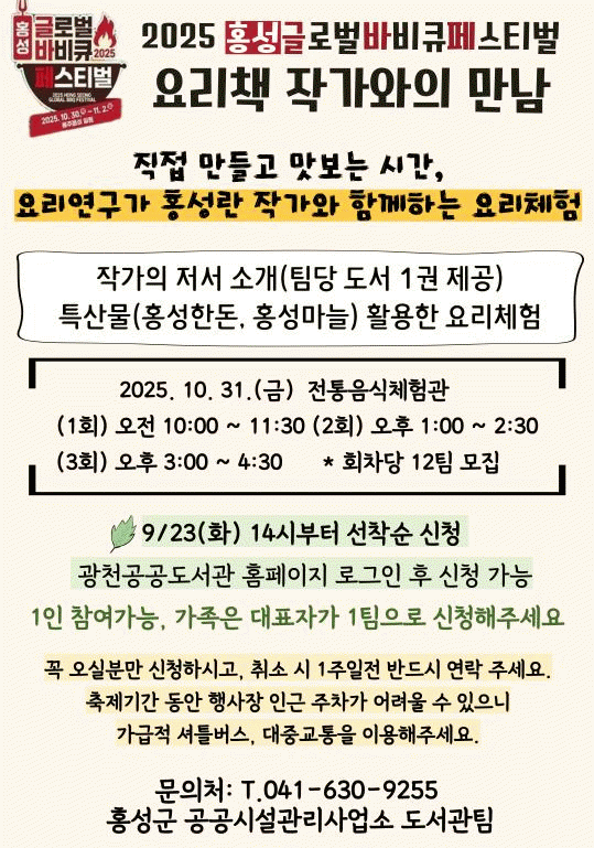 À̹ø Çà»ç´Â 2025 È«¼º±Û·Î¹ú¹ÙºñÅ¥Æä½ºÆ¼¹ú°ú ¿¬°èÇØ Áö¿ª Ư»ê¹°À» Ȱ¿ëÇÑ ¿ä¸® üÇè°ú ÀÛ°¡¿ÍÀÇ ¼ÒÅëÀ» ÅëÇØ µ¶¼¹®È È®»ê°ú ³ó¡¤Æ¯»ê¹° È«º¸¸¦ ÇÔ²² ÃßÁøÇÑ´Ù.