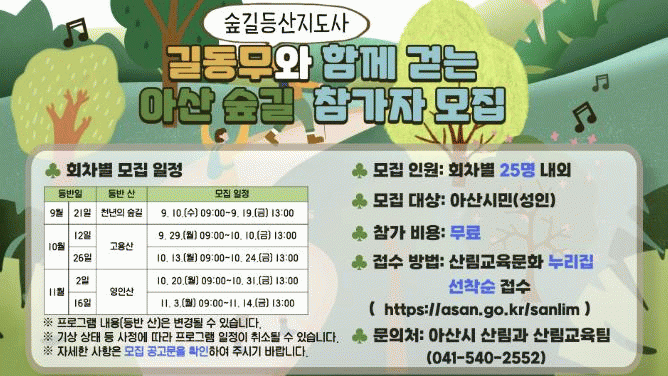 À̹ø ÇÁ·Î±×·¥Àº 9¿ùºÎÅÍ 11¿ù±îÁö ÃÑ 5ȸ ÁøÇàµÇ¸ç, ¿Ã¹Ù¸¥ °È±â ÀÚ¼¼¿Í ¾ÈÀüÇÑ »êÇà¹ýÀ» ¹è¿ì°í, ½£ ÇØ¼³°ú ½ºÅ丮ÅÚ¸µÀ» ÅëÇØ ÀÚ¿¬ ¼Ó¿¡¼ °Ç°°ú Ä¡À¯ÀÇ ½Ã°£À» °®µµ·Ï ±âȹµÆ´Ù.