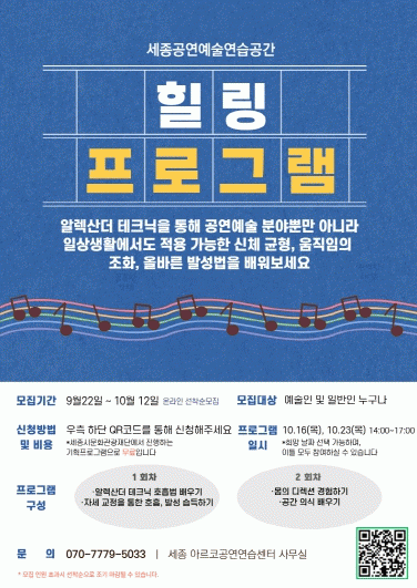 ÀÌ¾î ¡®Èú¸µ ÇÁ·Î±×·¥¡¯Àº 10¿ù 16Àϰú 23ÀÏ ¾çÀϰ£ ¿î¿µµÈ´Ù. ¿¹¼úÀΰú ÀϹÝÀÎ 15¸íÀ» ´ë»óÀ¸·Î Çѱ¹ ¾Ë·º»ê´õÅ×Å©´ÐÇùȸ Àü¹® °»ç°¡ ÁøÇàÇÏ´Â ¹Ù¸¥ ÀÚ¼¼¿Í È£Èí¹ýÀ» ÅëÇÑ ½Åü Ȱ¿ë °³¼±¹ýÀ» ¹è¿öº»´Ù. ¡®¾Ë·º»ê´õ Å×Å©´Ð¡¯Àº ±¹³» ´Ù¼ö ¿¹¼úÇб³¿Í °ø¿¬´Üü¿¡¼ äÅÃÇϰí ÀÖ´Â ±³À°°úÁ¤À¸·Î, Âü°¡Àڵ鿡°Ô ¿¹¼úȰµ¿¿¡ ÇÊ¿äÇÑ ½ÅüÀû ¿ª·® °È ±âȸ¸¦ ¸¶·ÃÇÒ ¿¹Á¤ÀÌ´Ù. ÇÁ·Î±×·¥ Á¾·á ÈÄ¿¡´Â Âü°¡ÀÚ °£ ³×Æ®¿öÅ· ½Ã°£µµ ¸¶·ÃÇØ ±³·ù¿Í Çù¾÷ÀÇ ÀåÀ» Á¦°øÇÑ´Ù.