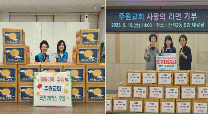 ÁÖ¿ø±³È¸´Â Ãë¾à°èÃþÀ» À§ÇØ °£¼®1µ¿°ú °£¼®2µ¿¿¡ °¢°¢ ¶ó¸é 20»óÀÚ, 19»óÀÚ¸¦ ±âŹÇß´Ù.